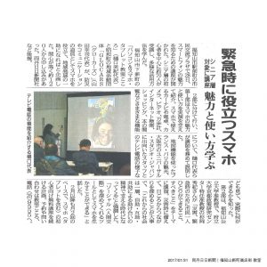 この度、両丹日日新聞に「ベネシードカルチャークラブ スマートフォン&タブレット教室 福知山新町商店街教室他主催」のスマートフォンの体感講座が記事掲載されました。