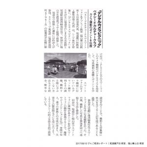 この度、地域唯一の経済紙であるびんご経済レポートに「ベネシードカルチャークラブ スマートフォン&タブレット教室 尾道瀬戸田教室・福山幕山台教室」が共催するスマートフォンのデジタルカメラピクニックが記事掲載されました。今回は近隣のauショップの協力もありました。