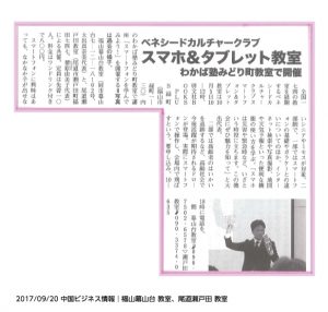 この度、「ベネシードカルチャークラブ スマートフォン&タブレット教室 福山幕山台教室と尾道瀬戸田教室」共催でわかば塾みどり町教室にて行われる講座「スマートフォンで学んでみよう」の開催告知が、記事掲載されました。