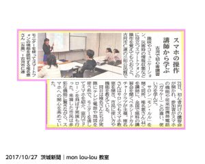 この度、茨城新聞に、「ベネシードカルチャークラブ スマートフォン&タブレット教室 mon lou-lou教室」が主催する、スマートフォンの体験講座の様子が記事掲載されました。
